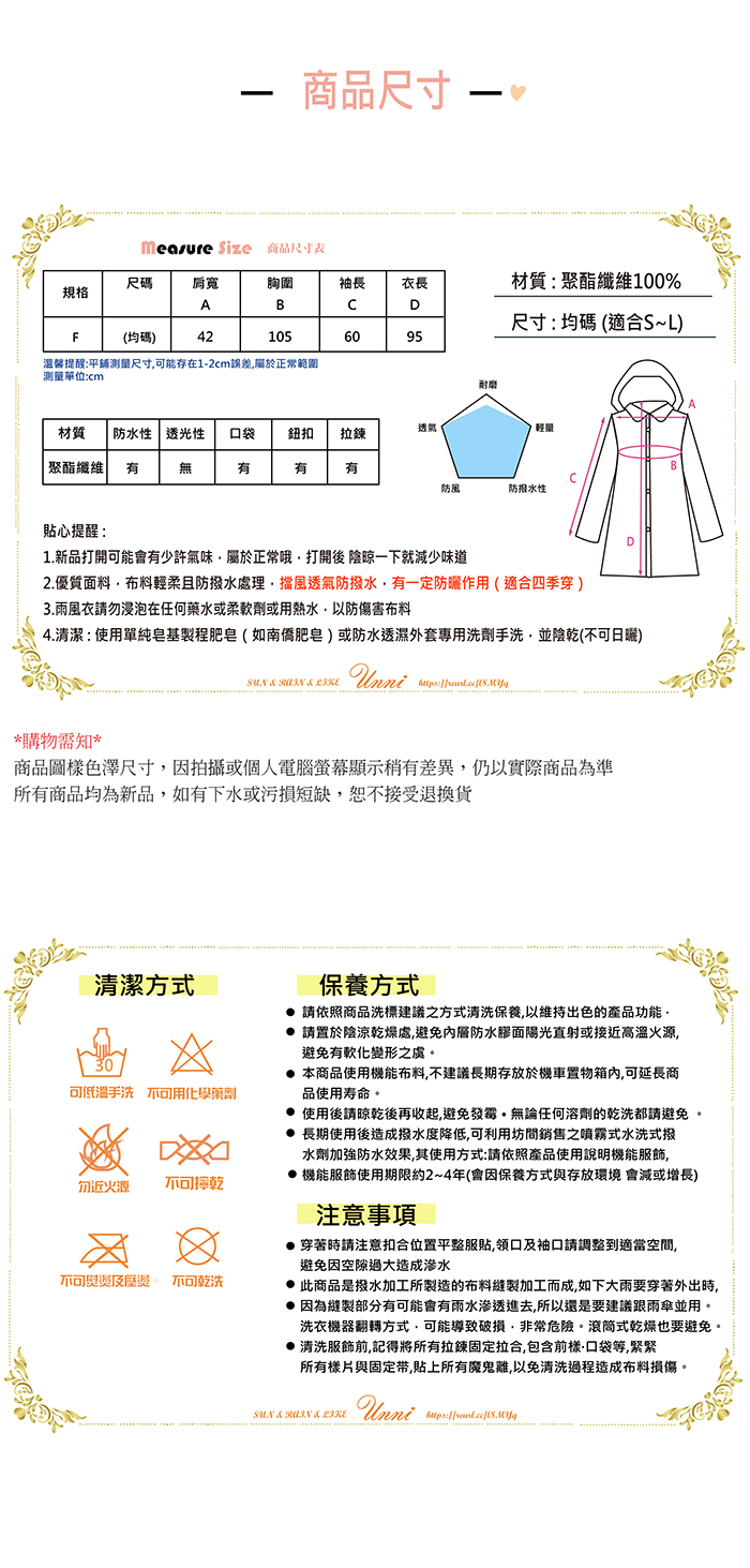 凡爾玫瑰防水風衣(擋雨.遮曬.擋風)