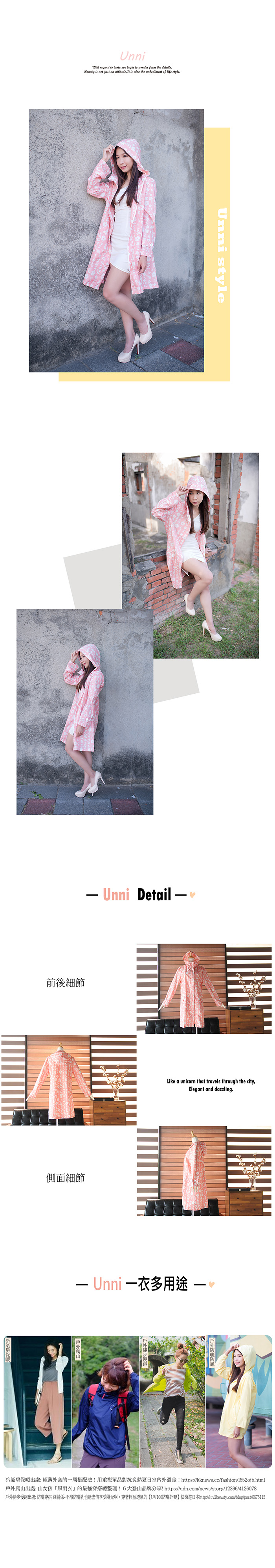 風衣外套:整件輕薄、透氣、防雨、防風、防曬