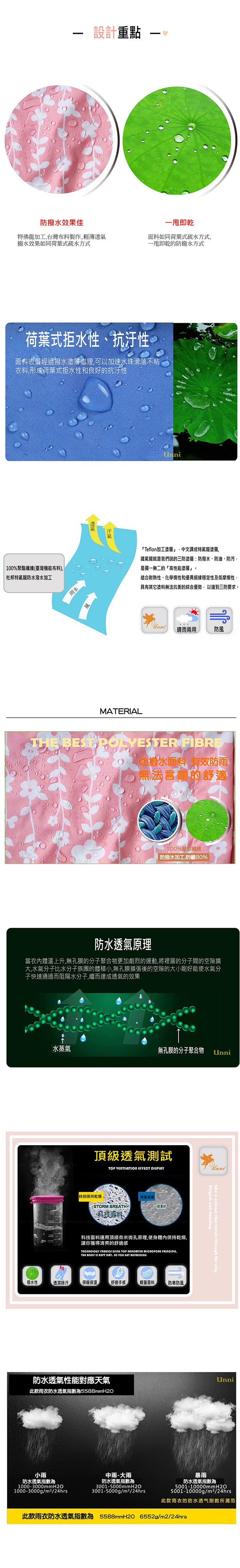 1. 高檔時尚機能風衣,雨水一甩即乾,出門旅行既可以當風衣穿,又可當雨衣穿。2. 材質:特氟龍塗層加工pongee(台灣機能布料),表層防潑水處理,具有荷葉式疏水效果,防撥水,又透氣,完全擺脫傳統雨衣3. 具有良好的柔軟性、擋風性和強度好,無毒環保、採用最先進的機械印花工藝,不存在色油、掉色、色牢度不好等問題 by Sun.Rain.Like