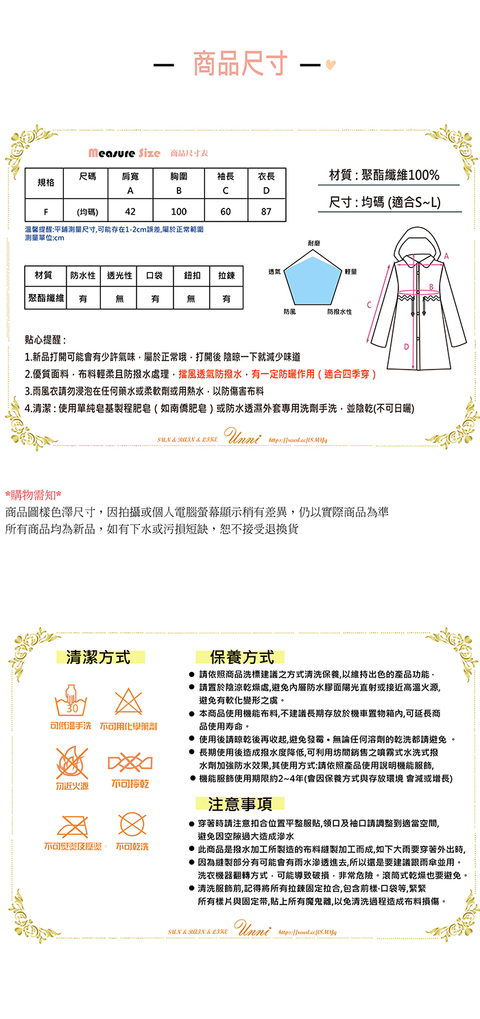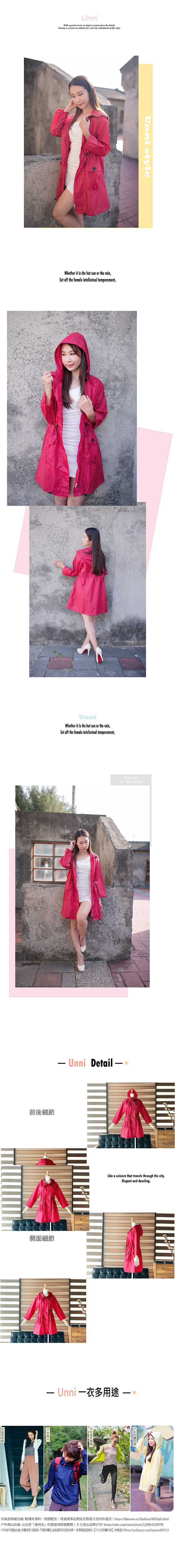 1. 高檔時尚機能風衣,雨水一甩即乾,出門旅行既可以當風衣穿,又可當雨衣穿。2. 材質:特氟龍塗層加工pongee(台灣機能布料),表層防潑水處理,具有荷葉式疏水效果,防撥水,又透氣,完全擺脫傳統雨衣3. 具有良好的柔軟性、擋風性和強度好,無毒環保、採用最先進的機械印花工藝,不存在色油、掉色、色牢度不好等問題 by Sun.Rain.Like
