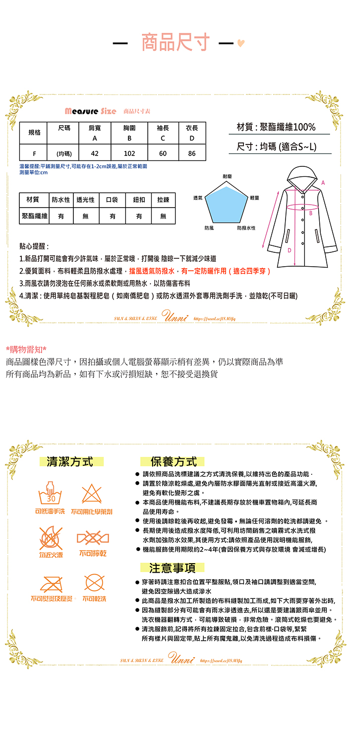 5.均碼:S~L均可穿(送配套收納袋) |量輕:約200g