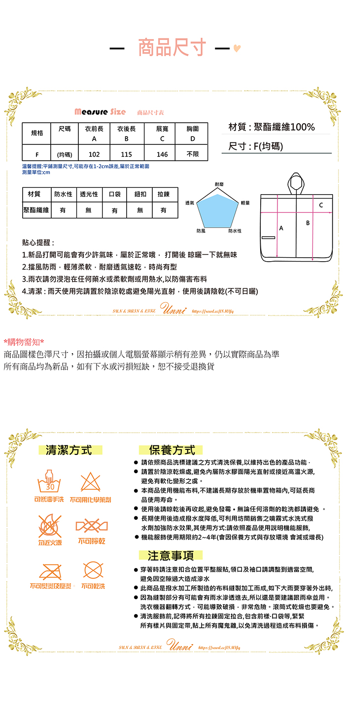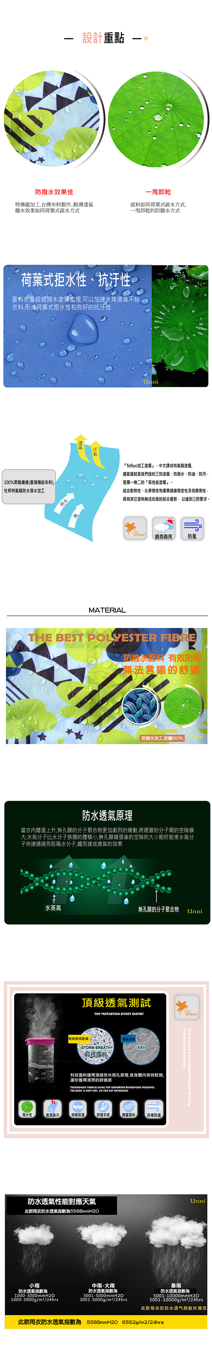 1. 高檔時尚機能風衣,雨水一甩即乾,出門旅行既可以當風衣穿,又可當雨衣穿。2. 材質:特氟龍塗層加工pongee(台灣機能布料),表層防潑水處理,具有荷葉式疏水效果,防撥水,又透氣,完全擺脫傳統雨衣3. 具有良好的柔軟性、擋風性和強度好,無毒環保、採用最先進的機械印花工藝,不存在色油、掉色、色牢度不好等問題 by Sun.Rain.Like