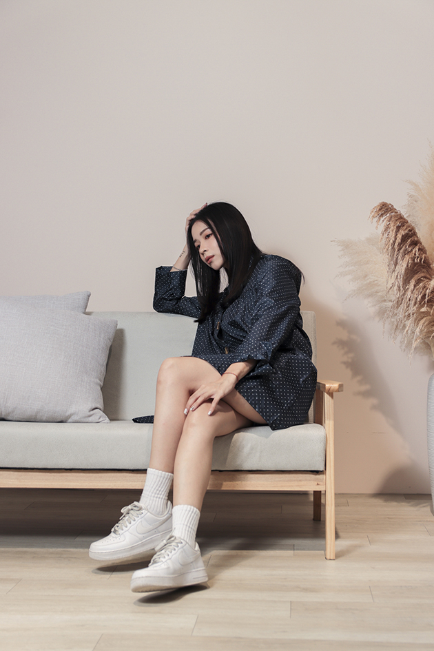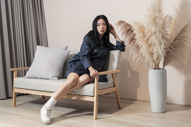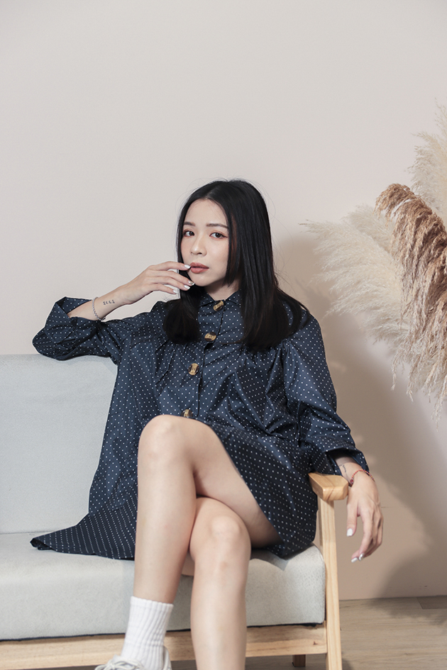 - 胸前抽皺,袖口可以反摺與不反摺造型