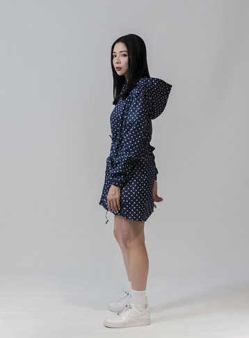 - 二側口袋,袖口束口,腰圍和下擺可調整,帽子不可拆
