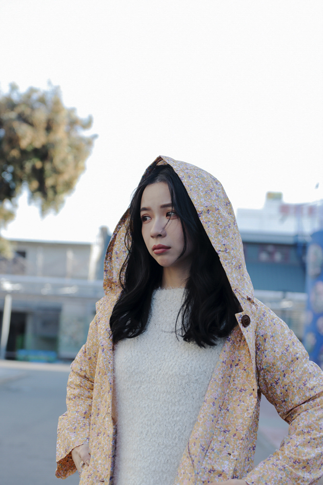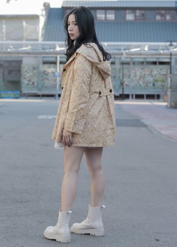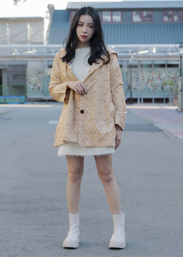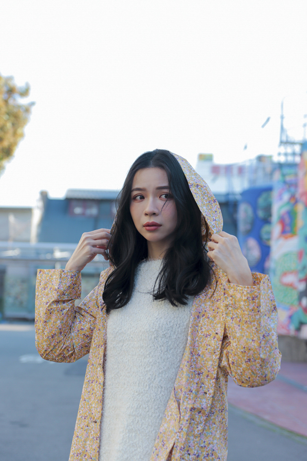 - 特殊斜肩剪裁、連帽款式、後腰扣帶造型設計