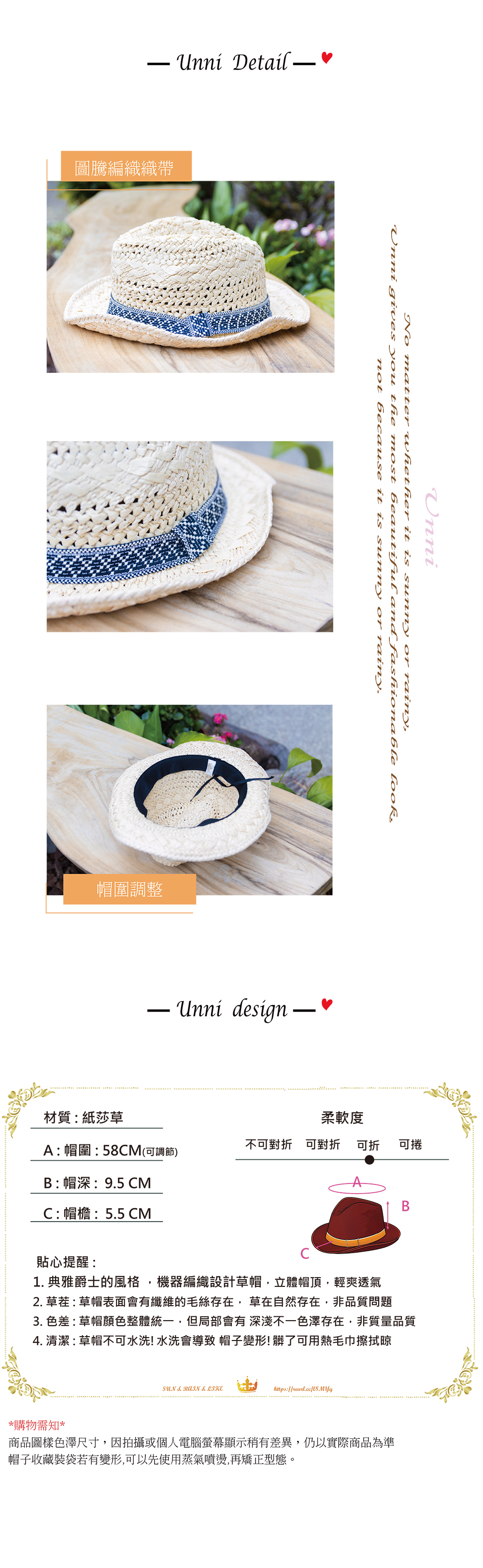 - 手工鏤空編織設計,帽圍是可調式頭圍