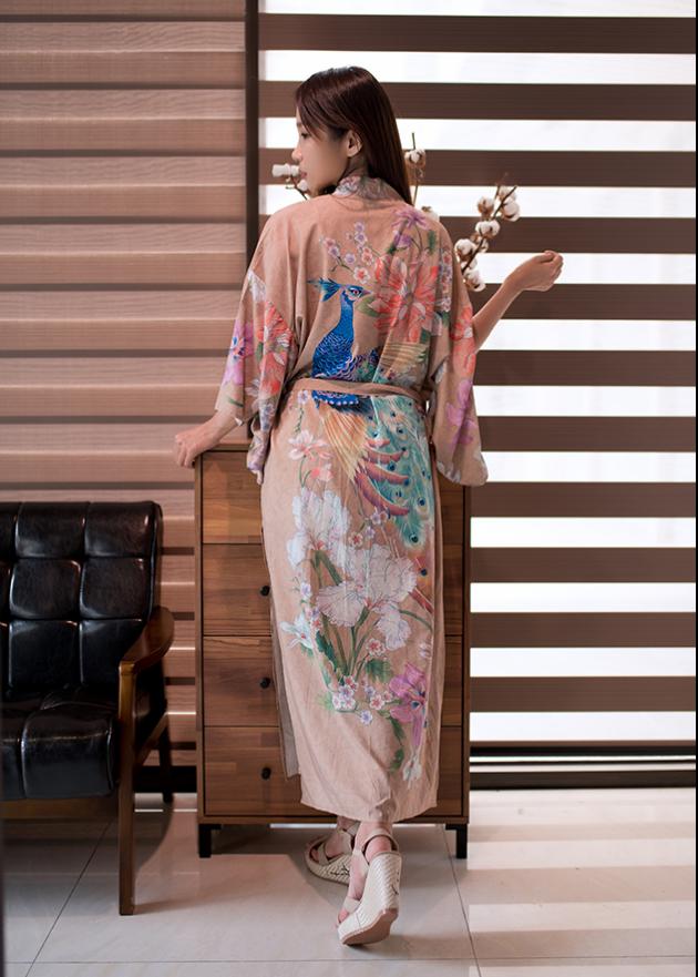 - 日式和服款式 ,前開襟綁帶 ,長版修身剪裁