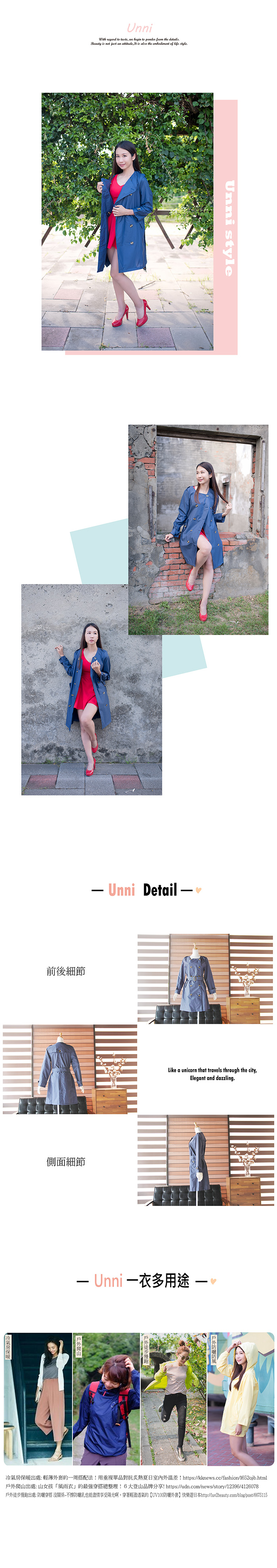 風衣外套:整件輕薄、透氣、防雨、防風、防曬